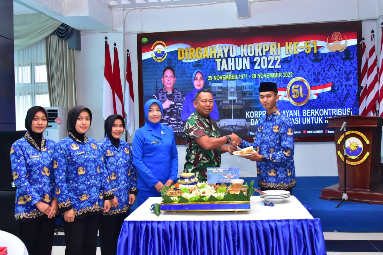 Sorong PB – TNI AL/ Koarmada III. Bertempat di Lobby Mako Koarmada III, Katapop Kabupaten Sorong Papua Barat, dilaksanakan acara syukuran HUT Korps Pegawai Republik Indonesia (Korpri) ke-51 yang berlanggung secara sederhana namun khidmat, dimana pada rangkaian acara tersebut dilaksanakan pemotongan tumpeng oleh Kepala Staf Koarmada III Laksamana Pertama TNI Rudhi Aviantara IH, S.E., M.Si, M.Tr (Han) yang didampingi Wakil Ketua Daerah Jalasenastri Armada III Ny Hesti Rudhi Aviantara, yang kemudian potongan tumpeng tersebut diserahkan kepada perwakilan PNS Koarmada III. Selasa (29/11/22).