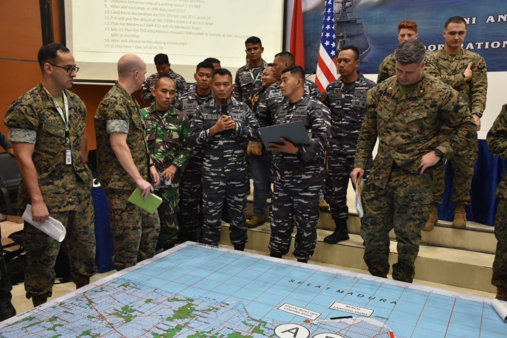 Jakarta – Memasuki tahap Sea Phase (Tahap Laut/Manuver Lapangan), Personel TNI Angkatan Laut (TNI AL) yang terlibat Satuan Tugas (Satgas) Latihan Bersama Cooperation Afloat Readiness And Training (CARAT) 2022 melaksanakan Tactical Floor Game (TFG) di Auditorium Puslatkaprang Kolat Koarmada II, Surabaya, Selasa (13/12).