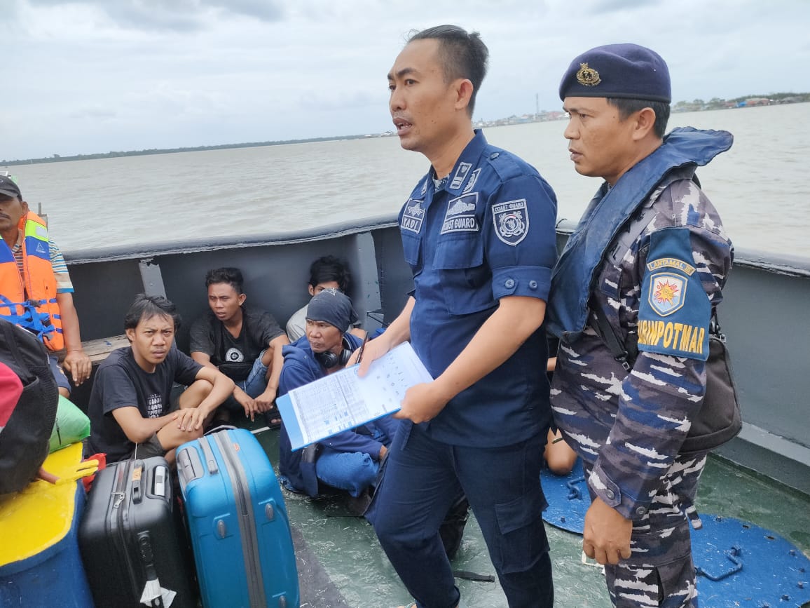 Jakarta – Tim SAR TNI Angkatan Laut (TNI AL) yang dilaksanakan oleh Pangkalan TNI AL (Lanal) Palembang membantu evakuasi 36 Anak Buah Kapal (ABK) Kapal (Flaoting Crane) FC Ark Shiloh di perairan Muara Sungsang, Kabupaten Banyuasin, Selat Bangka, Sumatera Selatan. Rabu (28/12).