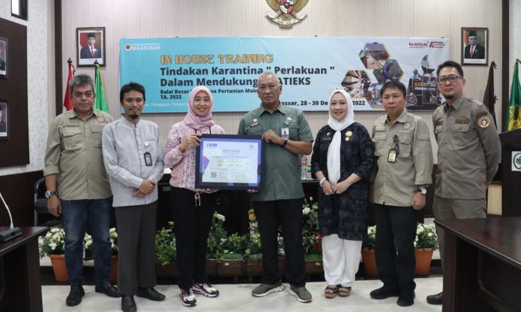 Makassar – Balai Besar Karantina Pertanian Makassar, Kementerian Pertanian (Kementan) konsisten melakukan pencegahan penyuapan. Tak ayal, berhasil mempertahankan SNI ISO SNI ISO 37001:2016.