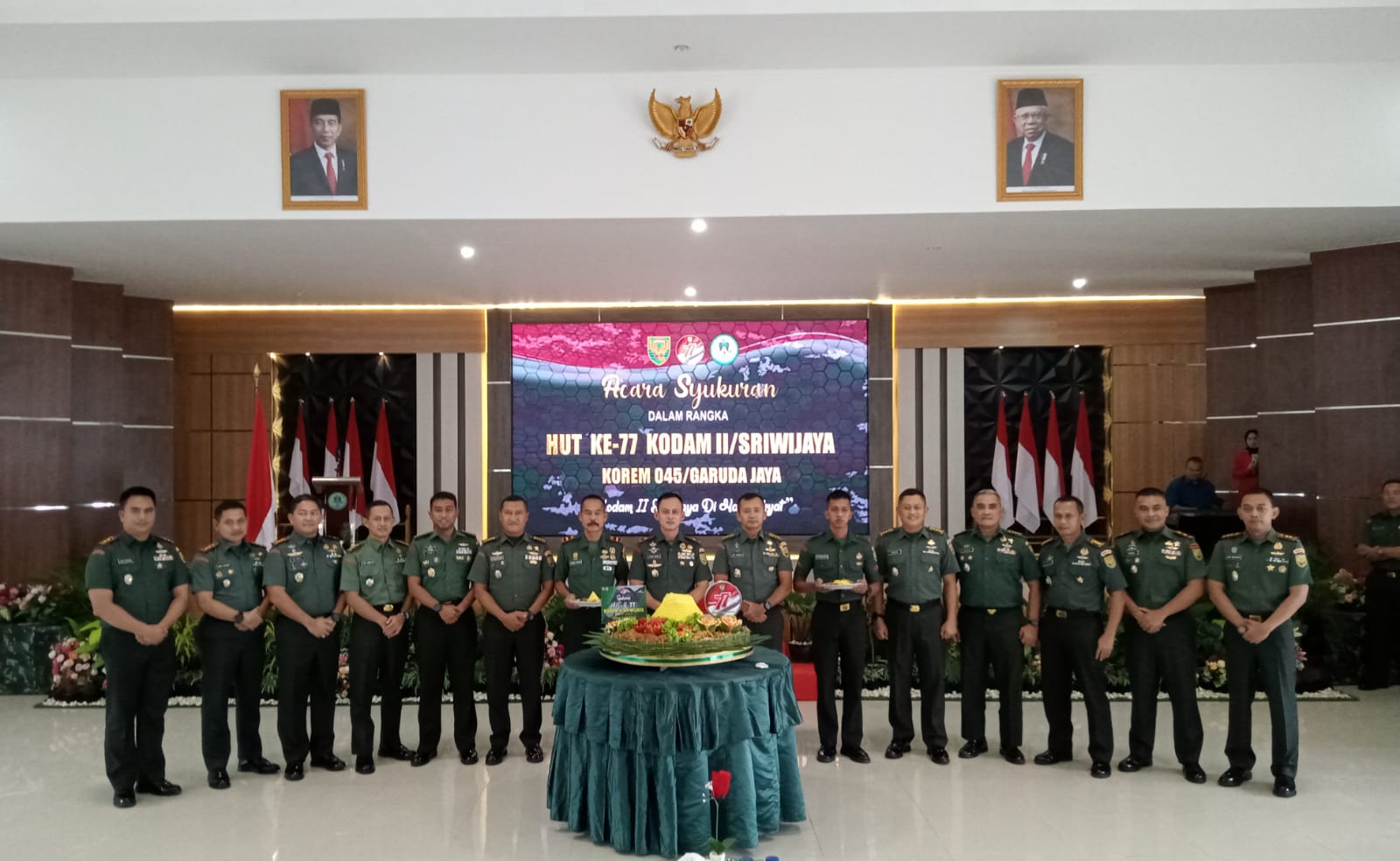 Pangkalpinang – HUT Kodam II/ Sriwijaya yang ke-77 tahun 2023, Korem 045/Garuda Jaya menggelar syukuran dipimpin langsung Danrem 045/Gaya, Brigjen TNI Ujang Darwis, MDA, acara berlangsung di Aula Makorem. Rabu (04/01).