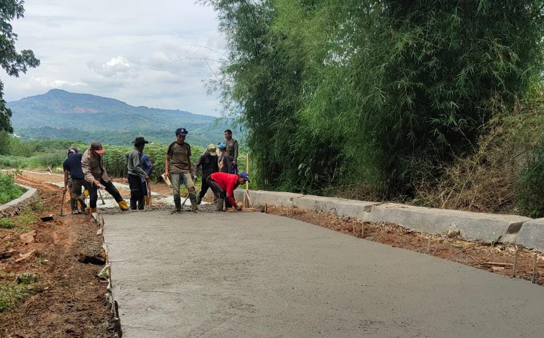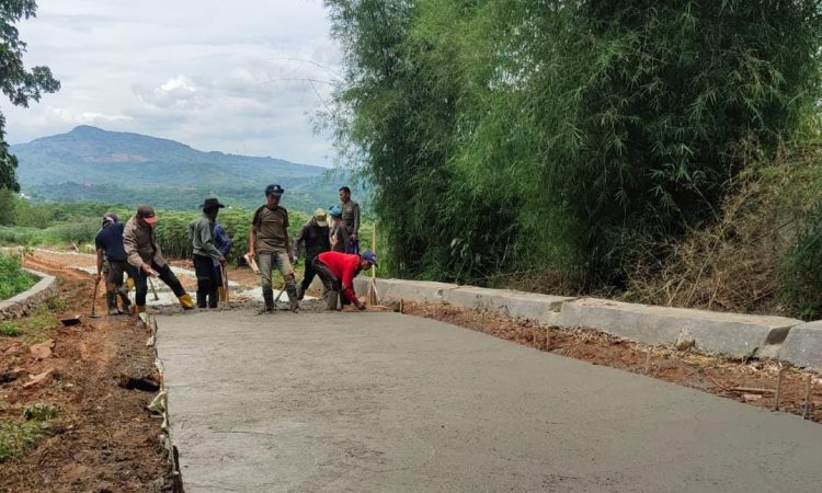 Bogor Pos Berita Nasional-demi meningkatkan perekonomian masyarakat diwilayahnya, Pemerintah Desa Pabuaran Kecamatan Sukamakmur Kabupaten Bogor, lakukan pengecoran jalan dan tembok penahan tanah (TPT) dengan menggunakan anggaran dana Samisade tahap satu dan dua tahun 2022.