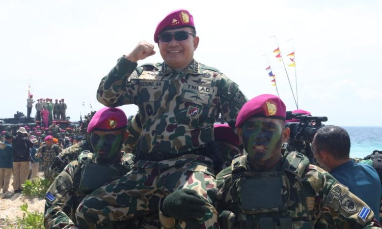 JAKARTA – Kepala Staf Angkatan Darat (Kasad) Jenderal TNI Dr. Dudung Abdurachman dikukuhkan sebagai warga kehormatan Korps Marinir TNI AL sekaligus menerima brevet Intai Para Amfibi (Taifib) dan brevet Anti Teror Aspek Laut dalam upacara yang dipimpin oleh Panglima TNI Laksamana TNI Yudo Margono, S.E.,M.M., di Pulau Damar, Kepulauan Seribu, Jakarta, Selasa (24/1/2023).