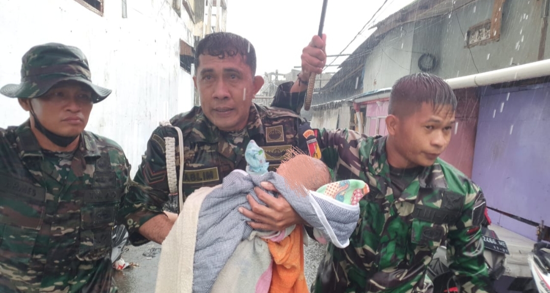 Dengan mengerahkan perahu LCR, para prajurit langsung masuk mendekati kediaman warga yang sudah terperangkap banjir yang semakin tinggi. Kaum lansia dan bayi menjadi prioritas utama penyelamatan. Pada keadaan darurat ini para pengungsi diarahkan ke posko TNI terdekat yang berada di seputaran Makorem 131/Santiago yang aman dari genangan banjir. (Dispenad)