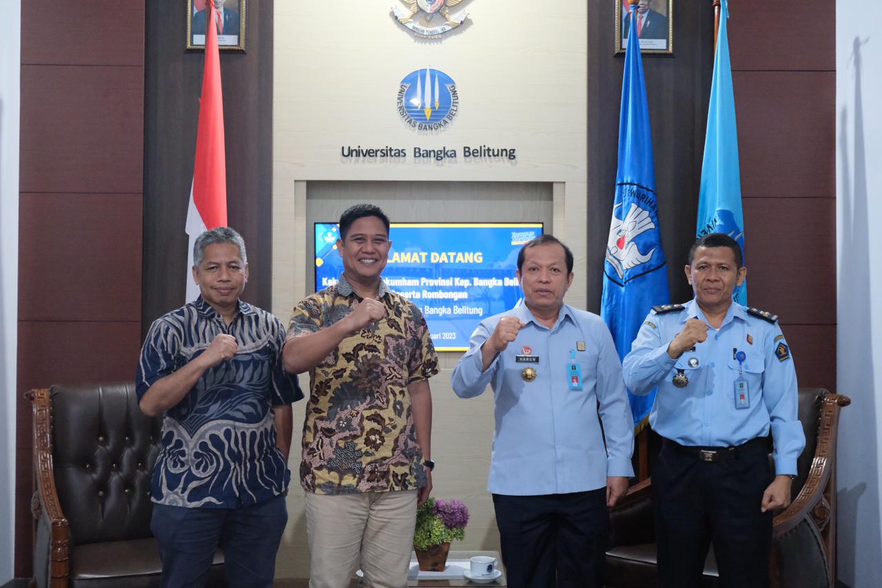 Pangkalpinang – Kepala Kantor Wilayah Kementerian Hukum dan HAM Kepulauan Bangka Belitung, Harun Sulianto, menyambangi Rektor Universitas Bangka Belitung (UBB), Prof Dr Ibrahim, Senin (30/1), bertempat di Ruang Pertemuan Rektor UBB.