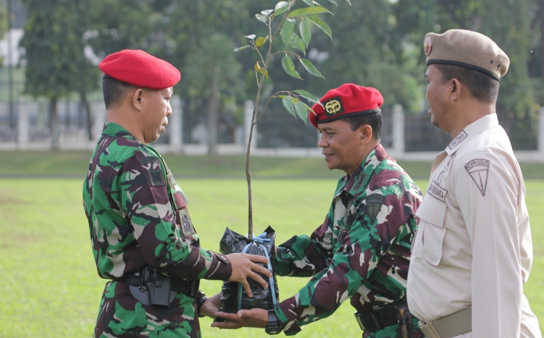 JAKARTA – Menunjang program pelestarian lingkungan yang dicanangkan pemerintah, Kopassus menyerahkan ribuan bibit pohon buah dan pohon produktif kepada masyarakat desa binaan dan para prajurit Kopassus untuk ditanam di lingkungan masing masing, Senin (6/2/2023).