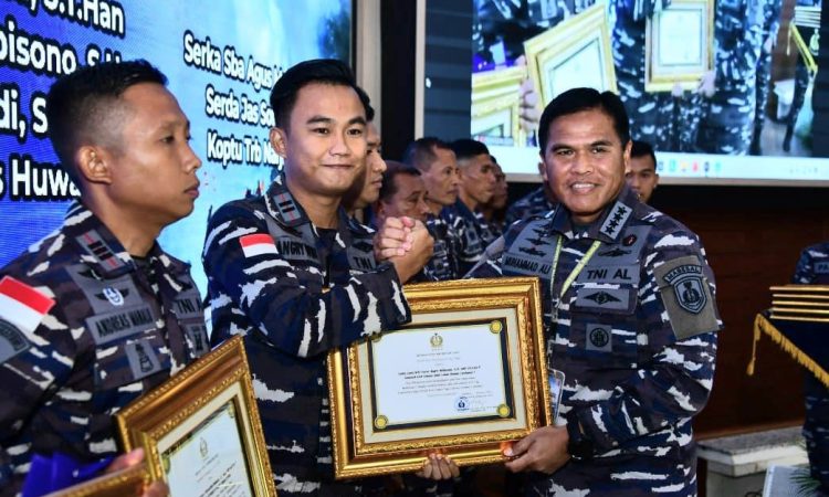 Jakarta – Pemberian penghargaan diberikan langsung oleh Kepala Staf Angkatan Laut (Kasal) Laksamana TNI Muhammad Ali kepada Satuan Kerja (Satker) dan Prajurit TNI Angkatan Laut (TNI AL) berprestasi sebagai wujud reward and punishment dari pimpinan TNI AL. Penghargaan tersebut diberikan disela-sela kegiatan Rapat Pimpinan (Rapim) TNI AL, di Gedung Auditorium Yos Sudarso Denma Mabesal, Cilangkap, Jakarta Timur. Senin (13/2)