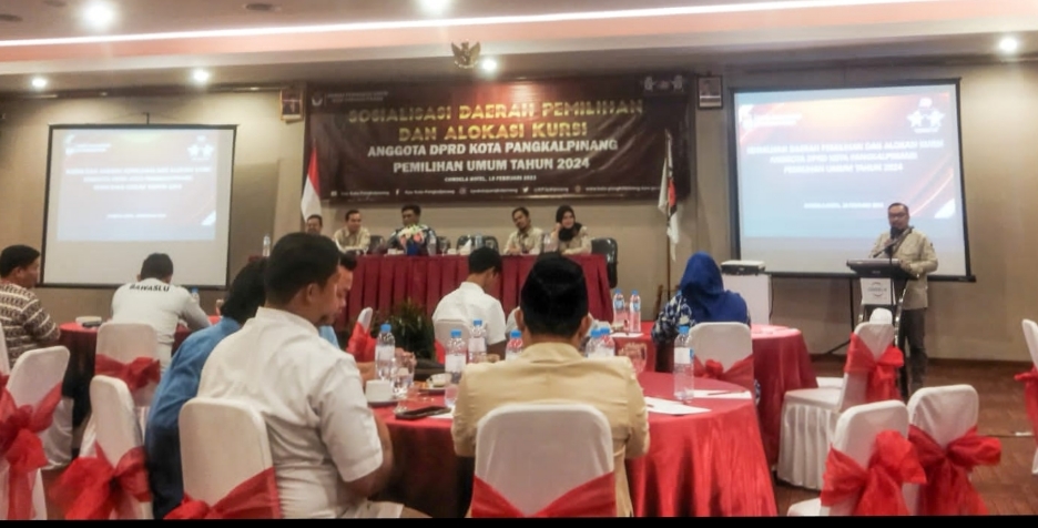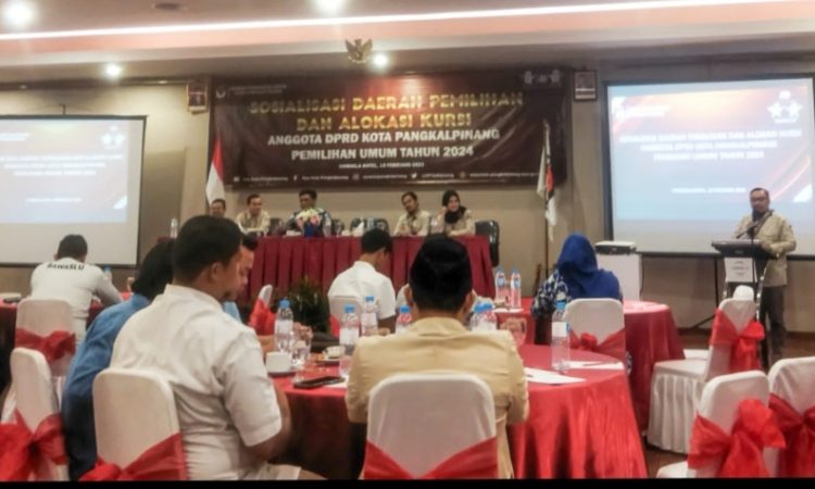 Pangkalpinang – Komisi Pemilihan Umum (KPU) Kota Pangkalpinang mengadakan Sosialisasi Daerah Pemilihan dan Alokasi kursi Anggota Dewan Perwakilan Daerah Kota Pangkalpinang Pemilihan Umum Tahun 2024 di Hotel Cordella, Sabtu (18/02/2023)