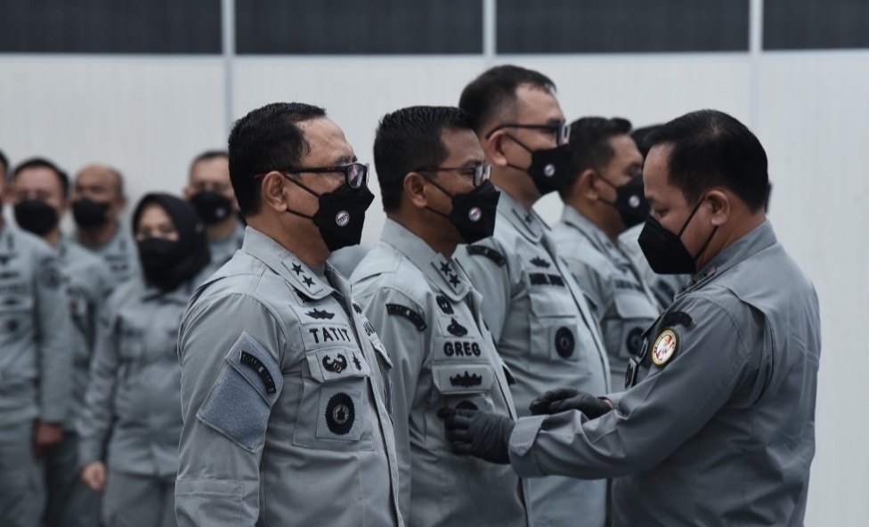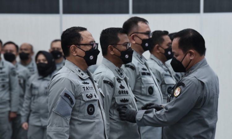 Jakarta – Kegiatan Pengukuhan yang di Pimpin langsung oleh Kepala Bakamla RI, Lakdsya TNI Dr. Aan Kurnia, dalam Upacara Pelaporan Kenaikan Pangkat, 8 orang Perwira Tinggi yang berlangsung dengan khidmat di Aula Ary Hasibuan Mabes Bakamla RI, Kamis (23/02).