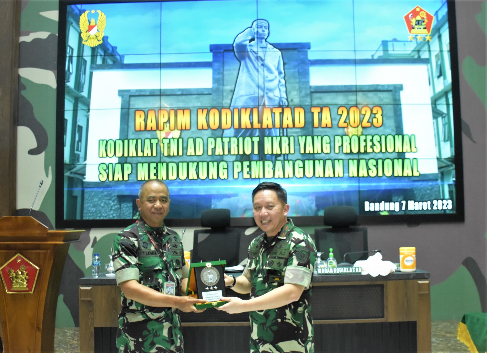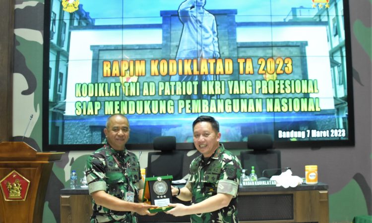 Bandung. Sebagai wahana komunikasi dan informasi para pimpinan jajaran Kodiklatad dalam mengevaluasi program kerja TA 2022 dan memahami pokok-pokok kebijakan pimpinan TNI AD, Dankodiklatad, Letjen TNI Arif Rahman, M.A. memimpin pelaksanaan Rapat Pimpinan Kodiklatad TA 2023 di Ruang Rapat Ganesha Makodiklatad. Selasa (7/3/2023).