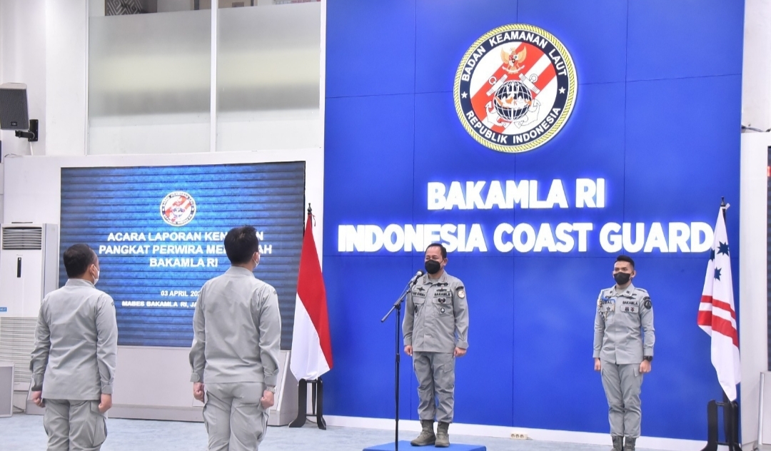 Jakarta – Dua orang Perwira Menengah Bakamla RI yang awalnya berpangkat Letnan Kolonel Bakamla, resmi berpangkat Kolonel Bakamla. Hal tersebut dikukuhkan dalam Upacara Pelaporan Kenaikan Pangkat, dipimpin oleh Kepala Bakamla RI Laksamana Madya TNI Dr. Aan Kurnia, di Aula Ary Hasibuan, Mabes Bakamla RI, Jakarta Pusat, Senin (3/4/2023).