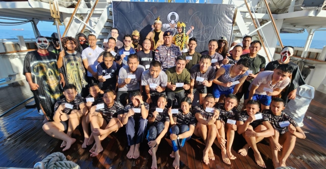 Jakarta – Usai mengikuti seluruh rangkaian tradisi mandi khatulistiwa, taruna Association South East Asia Nations (ASEAN) Cadet Sail 2023 resmi menjadi warga kehormatan KRI Bima Suci di atas geladak KRI Bima Suci dalam pelayarannya menuju Batam, Selasa (04/04).