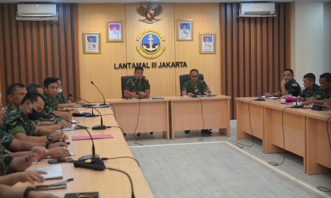 Jakarta – Dalam rangka kembali mempersiapkan Kampung Bahari Nusantara (KBN) TNI Angkatan Laut TA 2022, Komandan Pangkalan Utama TNI AL (Lantamal) III Jakarta Brigjen TNI (Mar) Harry Indarto, S.E., M.M., di damping Wakil Komandan (Wadan) Lantamal III Kolonel Laut (P) Whisnu Kusardianto S.E., M.H., CRMP., memimpin rapat akhir kesiapan masing-masing Seksi bertempat di Ruang Rapat Mako Lantamal III, Jl. Gunung Sahari No.02, Ancol, Jakarta Utara. Senin (10/04/2023).