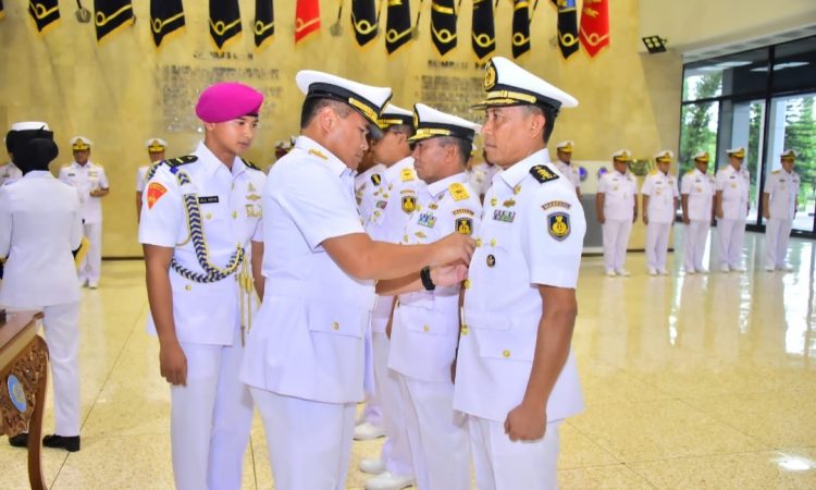 Jakarta – Kepala Staf Angkatan Laut (Kasal) Laksamana TNI Muhammad Ali memimpin upacara serah terima jabatan enam pejabat tinggi (Pati) TNI AL di jajaran Mabesal, acara berlangsung di Mabesal, Cilangkap, Jakarta Timur. Senin (10/04).