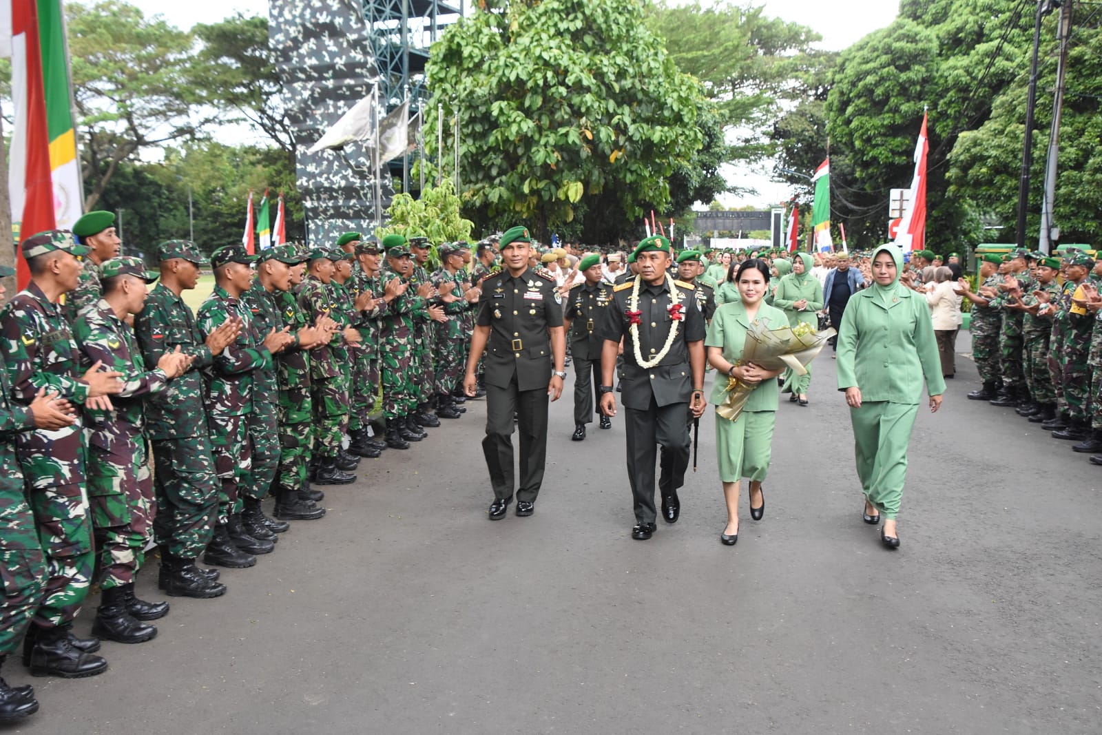 Kodam Jaya_Jakarta Timur. Pangdam Jaya/Jayakarta Mayjen TNI Mohamad Hasan beserta Ketua Persit KCK PD Jaya Ibu Ririx Rahmalia M Hasan melakukan kunjungan kerja (Kunker) perdana, di Resimen Induk Kodam Jaya (Rindam), Jln. Condet Raya Pasar Rebo Jakarta Timur. Jumat (14/04/2023).