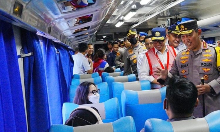 Jakarta – Kapolri Jenderal Listyo Sigit Prabowo beserta stake holder terkait meninjau pelayanan dan pengamanan arus mudik di Stasiun Pasar Senen, Jakarta Pusat, Rabu, 19 April 2023.