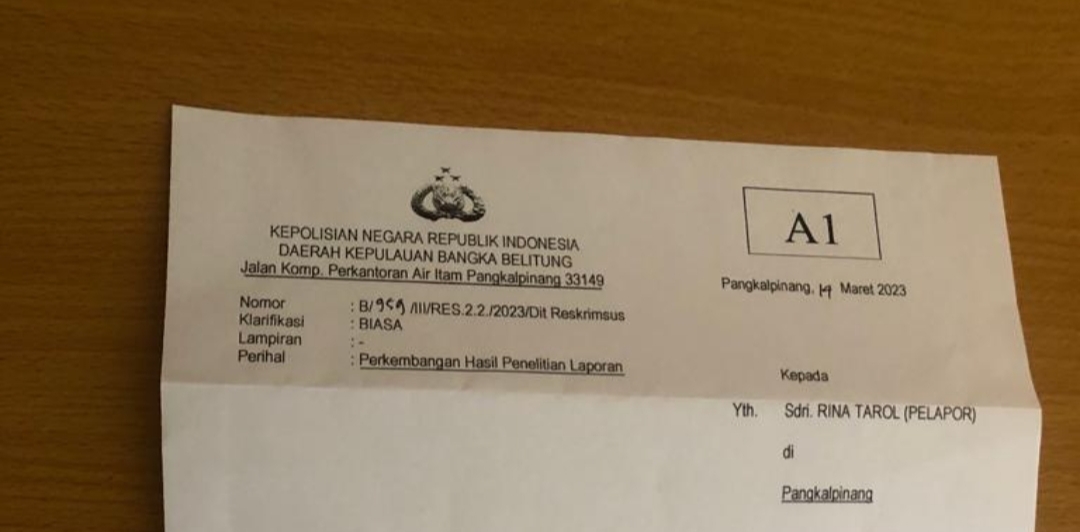 Lanjut Rina, laporan sudah disampaikan ke Ditreskrimsus Polda Bangka Belitung itu berkaitan dengan kerugian, perihal jaminan di bank untuk Kredit Modal Kerja (KMK) yang ditagihkan atau digunakan bukan untuk kepentingan saya,” ucap Rina. Rabu (31/05).