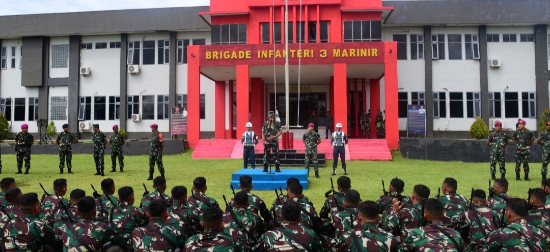 Pemeriksaan Kesiapan Operasi (Riksiapops) prajurit Pasmar 3 yang akan melaksanakan Satgasmar PAM Puter XII wilayah timur ini digelar di lapangan apel Brigif 3 Marinir Ksatrian Marinir Katapop Abraham Octavianus Atururi, Distrik Salawati, Kab. Sorong, Papua Barat Daya.
