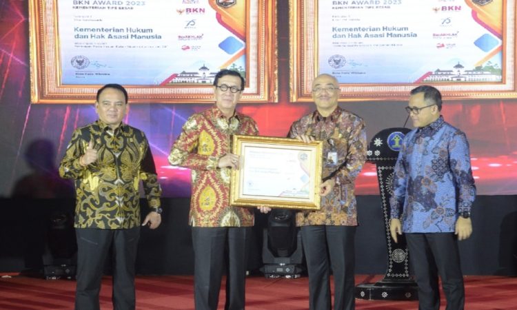 Terkini, Kemenkumham meraih penghargaan pada BKN Award 2023 dalam tiga kategori yaitu kategori utama Implementasi Norma Standar Prosedur Kriteria Manajemen ASN; kategori Pemanfaatan Data Sistem Informasi dan CAT; dan kategori Implementasi Penerapan Manajemen Kinerja.