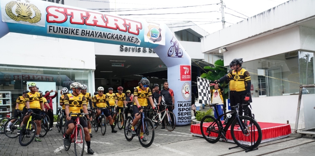 Fun Bike yang digelar oleh Polda Papua Barat dalam rangka memperingati Hari Ulang Tahun Bhayangkara ke 77 akan diperingati di tanggal 1 Juli 2023 ini mengusung tema “Polri Presisi Untuk Negeri, Pemilu Damai Menuju Indonesia Maju”.