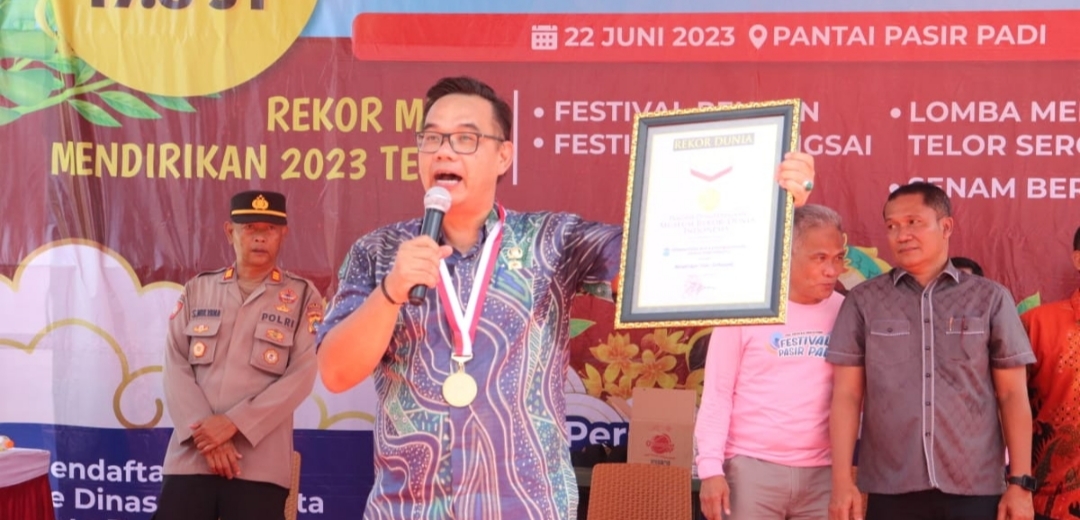“Dikawasan wisata pantai Pasir Padi sungguh bahagia kedatangan panitia Museum Rekor Indonesia atau MURI untuk menyaksikan telur didirikan dengan target sebanyak 2023 butir telur”, Ujar Mie Go, Sekretaris Daerah Kota Pangkalpinang dalam sambutan.