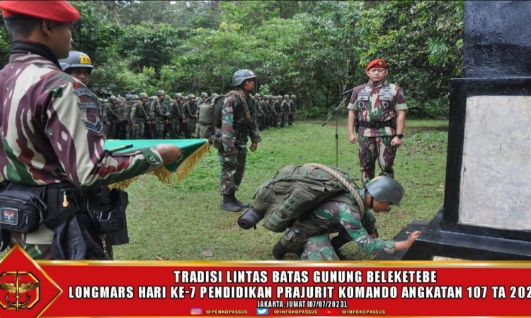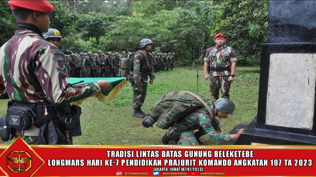 Jakarta, – Mewakili Komandan Jenderal Kopassus pada kegiatan Tradisi Lintas Batas pada Latihan Longmars Siswa Komando, Wakil Komandan Jenderal Kopassus, Brigadir Jenderal TNI Achiruddin, S.E memimpin acara Tradisi Lintas Batas Jawa Barat-Jawa Tengah bertempat di Tugu Kopassus puncak Gunung Beleketebe. Tradisi tersebut merupakan bagian dari kegiatan Longmars siswa pendidikan Komando 107 TA 2023, Jum’at (7/7/2023)