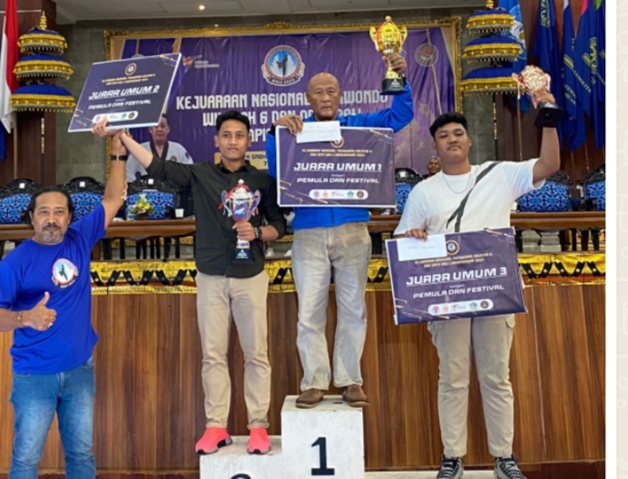 Ditempat terpisah Humas Pengurus Taekwondo Indonesia (TI) Bali, Arie Wihandoko mengatakan Juara Umum I Prestasi diraih oleh Provinsi Bali, menyusul Nusa Tenggara Barat (NTB) di juara II dan Juara III Nusa Tenggara Timur (NTT). Sementara Juara Umum Pemula/Festival diraih Dojang Dinasty TNI AL Club Bali, Juara II Dojang Udayana Badung Bali dan Juara III Satria Muda Club Bali. Dengan menempatkan “Atlit terbaik pemula putra dari Dojang Udayana Badung, an. Ketut Linois Atma Nanda dan atlit terbaik putri Pemula Festival dari Dojang Dinasty TNI AL atas nama Ni Nyoman Putri Ayu,”.