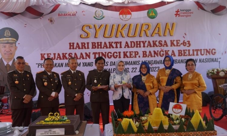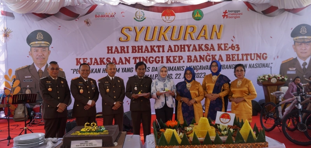 Kemudian dilanjutkan dengan acara syukuran pemotongan tumpeng Hari Bhakti Adhyaksa Ke- 63 Tahun 2023 oleh Kepala Kejaksaan Tinggi Kepulauan Bangka Belitung beserta jajaran disertai dengan acara hiburan.