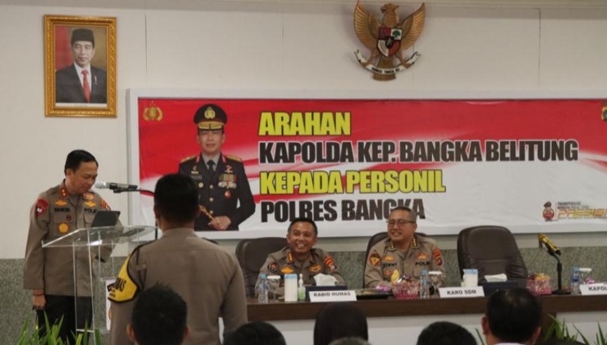 Kapolda Kepulauan Bangka Belitung Irjen Drs.Yan Sultra I, SH., dalam arahannya kepada personil Polres Bangka mengatakan dalam melaksanakan tugas memberikan pelayanan kepada masyarakat agar personil tidak bersikap arogan