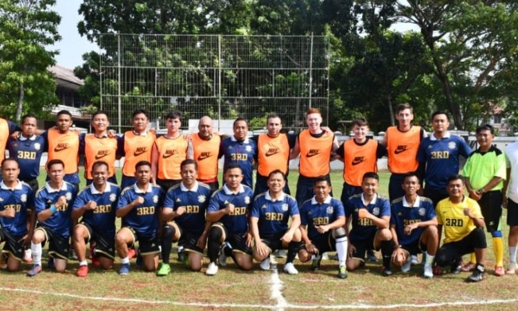 Jakarta, – Komandan Pangkalan Utama TNI AL (Danlantamal) III Jakarta Brigjen TNI (Mar) Harry Indarto, S.E., M.M. diwakili Asisten Operasi (Asops) Danlantamal III Jakarta Kolonel Laut (P) Agung Nugroho, S.E., M.Tr.Hanla. menggelar olahraga bersama antara prajurit Lantamal III Jakarta dengan crew kapal perang Amerika Serikat USS Blue Ridge (LCC-19) dalam rangka untuk menjalin sinergitas TNI Angkatan Laut dengan Angkatan Laut Amerika Serikat bertempat di lapangan bola Yonmarhanlan lll, Kelapa Gading, Jakarta Utara, Jumat (28/07/2023).