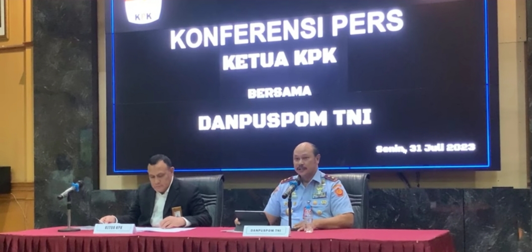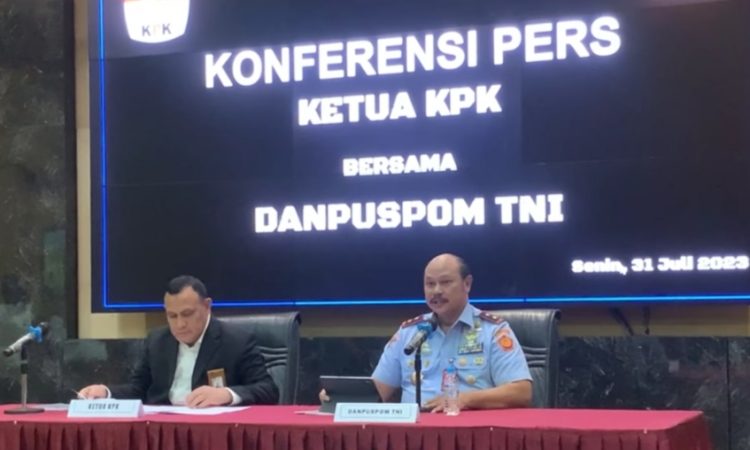 Jakarta, –  Dua instansi negara (KPK dan Puspom TNI) bertemu di Konferensi Pers terkait kasus dugaan korupsi di tubuh Basarnas RI yang melibatkan 2 TNI aktif satu perwira berpangkat Letnan Kolonel dan satu periwara tinggi (Pati) berpangkat bintang tiga, dalam kesempatan tersebut, pihak KPK dihadiri langsung Ketua KPK Firli Bahuri dan Danpuspom TNI Marsda Agung Handoko, acara berlangsung di Mabes TNI, Cilangkap, Jakarta Timur, Senin (31/7/2023).