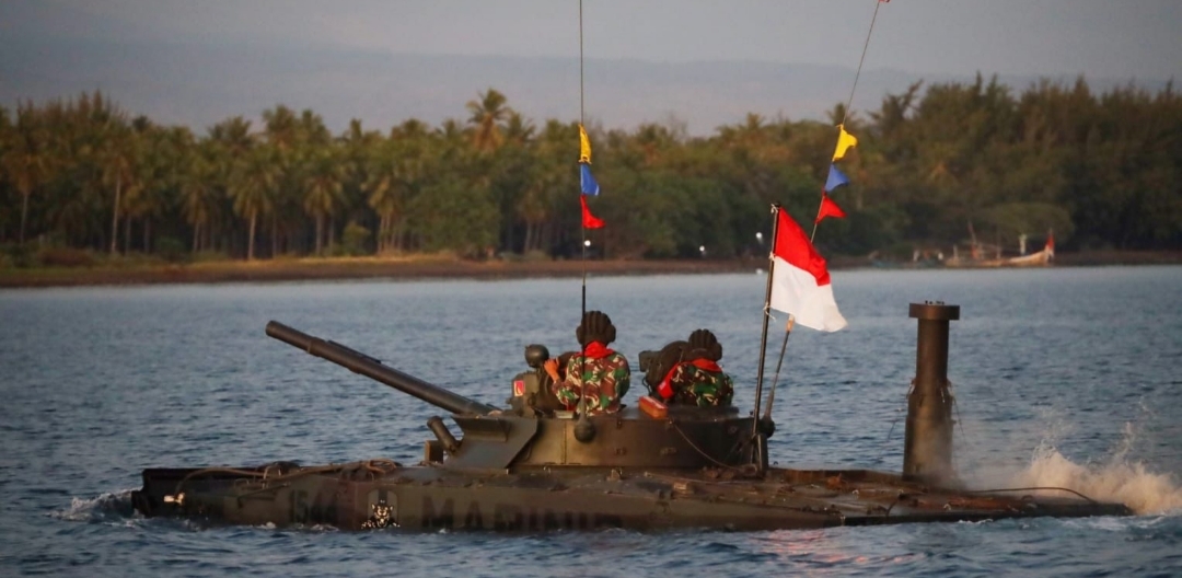 Jakarta,- Puluhan Kendaraan Tempur milik Korps Marinir TNI AL serta pasukannya melaksanakan pendaratan amfibi di Pantai Banongan. Ini merupakan tahap Manuver Lapangan dalam Latihan Gabungan TNI 2023, Selasa (1/8), di Situbondo, Jawa Timur.