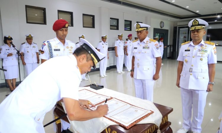 Sorong, – Pangkoarmada III Laksamana Muda TNI Rachmad Jayadi memimpin acara Pengambilan Sumpah dan Penandatanganan Pakta Integritas Serah Terima Jabatan Kepala Staf Koarmada III (Kaskoarmada III) di Pasific Room Mako Koarmada III, Katapop, Kab Sorong, Papua Barat Daya. Sabtu (5/8/2023).