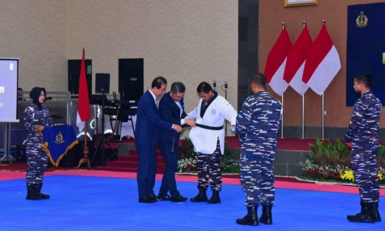 Jakarta, – Komandan Korps Marinir (Dankormar) Mayjen TNI (Mar) Nur Alamsyah, S.E., M.M., M.Tr (Han) diwakili oelh Wakil Komandan Korps Marinir (Wadan Kormar) Brigjen TNI (Mar) Suherlan, S.E., M.M., M.Sc., CHRMP. menghadiri acara pemberian dan penyematan sabuk kehormatan DAN VI Taekwondo Kukkiwon kepada Kepala Staf Angkatan Laut (Kasal) Laksamana TNI Muhammad Ali, S.E., M.M., M.Tr.Opsla., di Gedung R.B. Supardan Mako Puspomal, Kelapa Gading, Jakarta Utara. Rabu (09/08/2023).