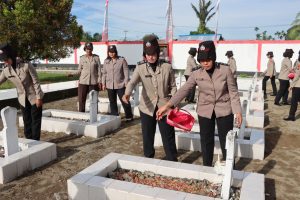 Kegiatan dipimpin langsung oleh Kapolres Nabire AKBP I Ketut Suarnaya, S.I.K., S.H. dan diikuti 30 Polwan melakukan ziarah dan tabur bunga di seluruh pusara makam para pahlawan.