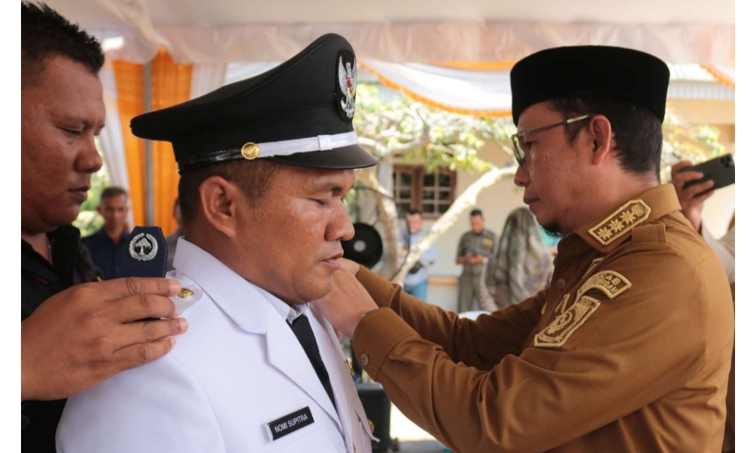 Usai melantik dan mengambil sumpah jabatan Kepala Desa Air Mesu Timur periode 2023 – 2024, Nomi Supitra, menggantikan Penjabat Kepala Desa (Kades) Air Mesu Timur, Sukarno.