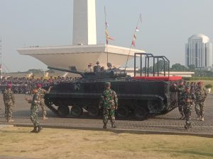 Jakarta – Gladi bersih dalam rangka menyambut perayaan HUT ke-78, pagi ini digelar berbagai atraksi menarik dan Alutsista dipamerkan di Silang Monas, Jakarta selasa (3/10/2023).