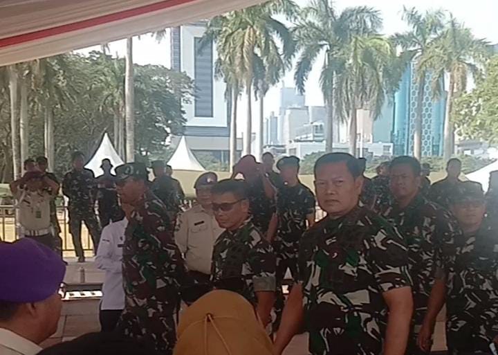 Jakarta, – Panglima TNI Laksamana Yudo Margono didampingi Kepala Staf Angkatan Darat menghadiri Gladi Bersih persiapan HUT TNI KE – 78 di silang Monas. Selasa 3 Oktober 2023.