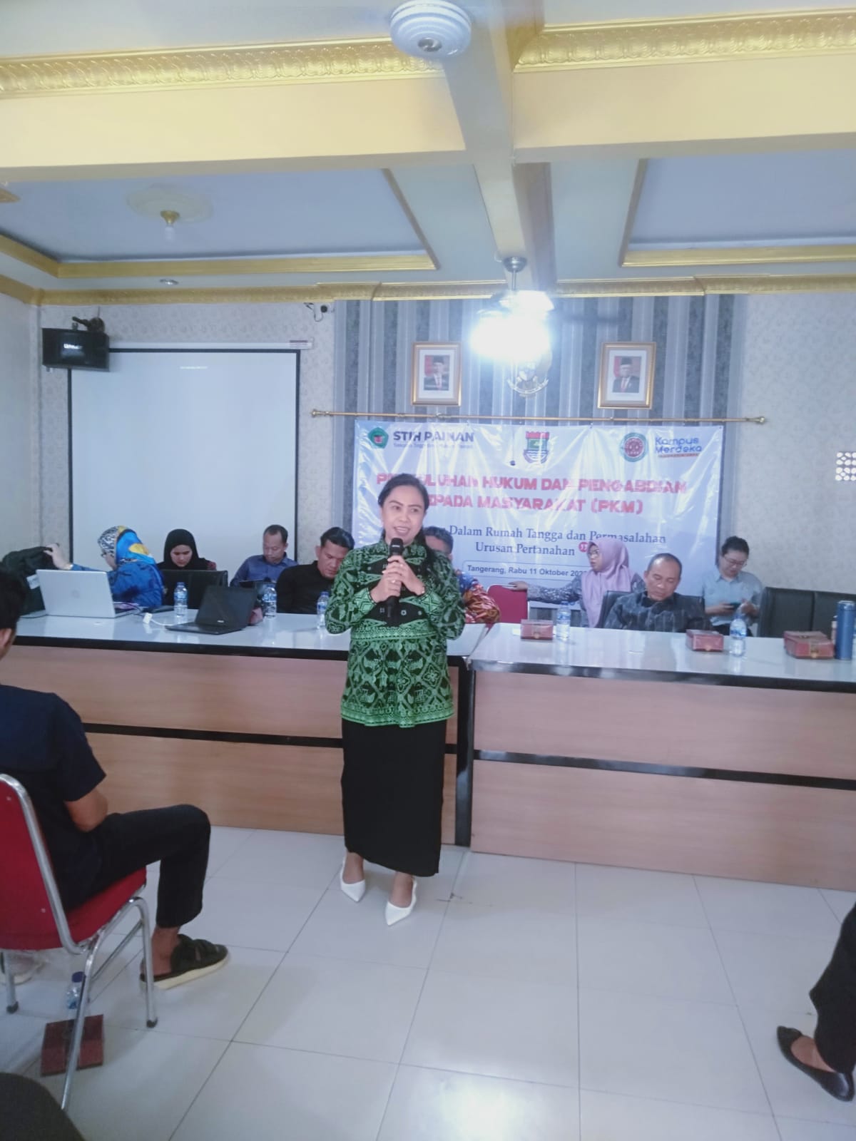 Ditempat yang sama Dosen Sekolah Tinggi Ilmu Hukum (STIH) Painan sekaligus praktisi sebagai Notaris/PPAT Herlina, S.H., MKn sebagai salah satu Narasumber menyampaikan dengan kesibukan keseharian yang cukup padat tetap akan menyempatkan dirinya untuk memberikan penyuluhan kepada masyarakat yang ada di wilayah Kabupaten Tangerang, ucapnya