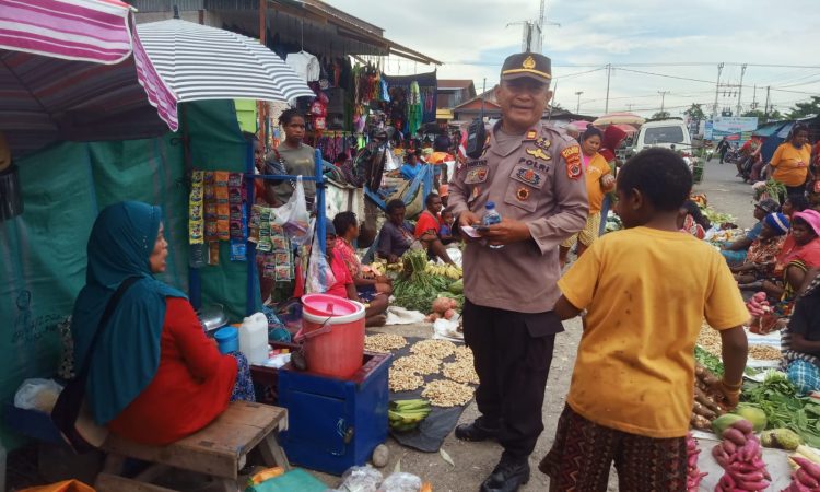 Dalam pelaksanaanya, Kapolsek Nabire Barat bertemu dengan mama-mama papua yang berjualan di pasar bumi raya distrik nabire barat kabupaten Nabire.