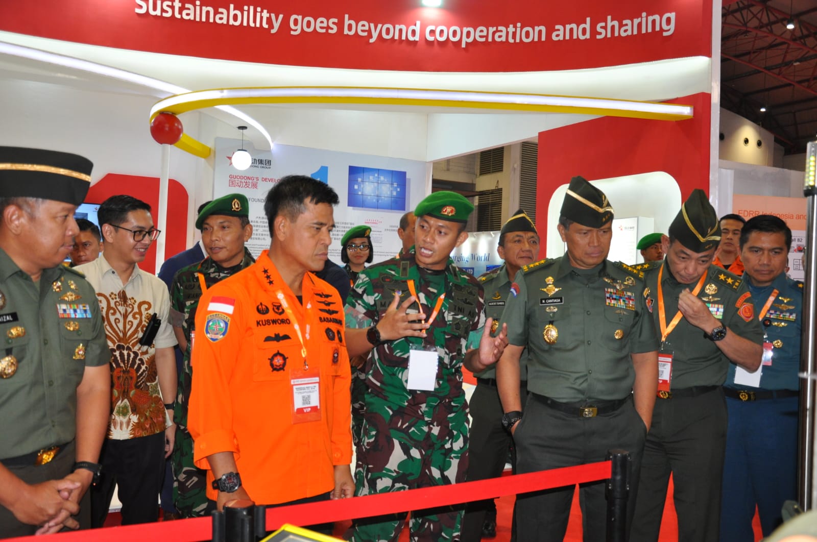 Dalam kesempatan ini, Kabasarnas Marsekal Madya TNI Kusworo didampingi Koorsahli Kasad Letjen TNI Nyoman Cantiasa, Irpusziad Brigjen TNI Ahmad Faisal dan Kasubditbin Jihandak & Nubika Pusziad Kolonel Czi Bambang KP, S.E., M.M. meninjau stan Zeni TNI AD.