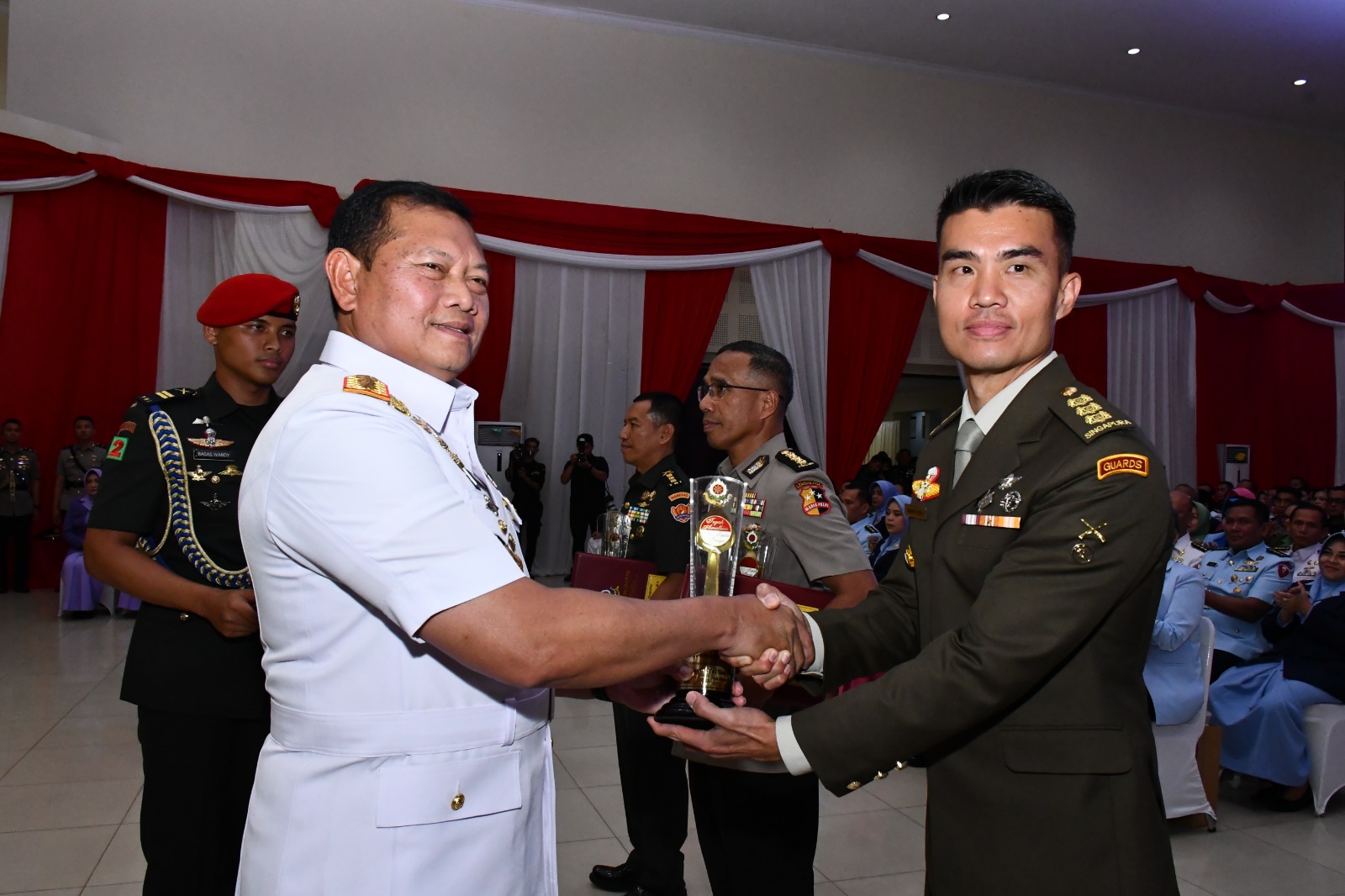 Turut hadir dalam upacara penutupan pendidikan diantaranya, Kapolri Jenderal Polisi Drs. Listyo Sigit Prabowo, M.Si., Kasal Laksamana TNI Muhammad Ali, Dansesko TNI Marsdya TNI Samsul Rizal, S.I.P., M.Tr.(Han), Ketum Dharma Pertiwi Ny.Vero Yudo Margono serta Pejabat Utama TNI Polri lainnya.