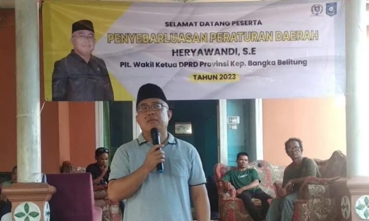 BABAR – Plt. Wakil Ketua DPRD, Heryawandi, setelah selesai melaksanakan kegiatan reses, kembali melanjutkan turun ke masyarakat dalam rangka penyebarluasan Peraturan Daerah (Perda), acara berlangsung di desa Tempilang Kab. Bangka Barat, Sabtu (18/11).