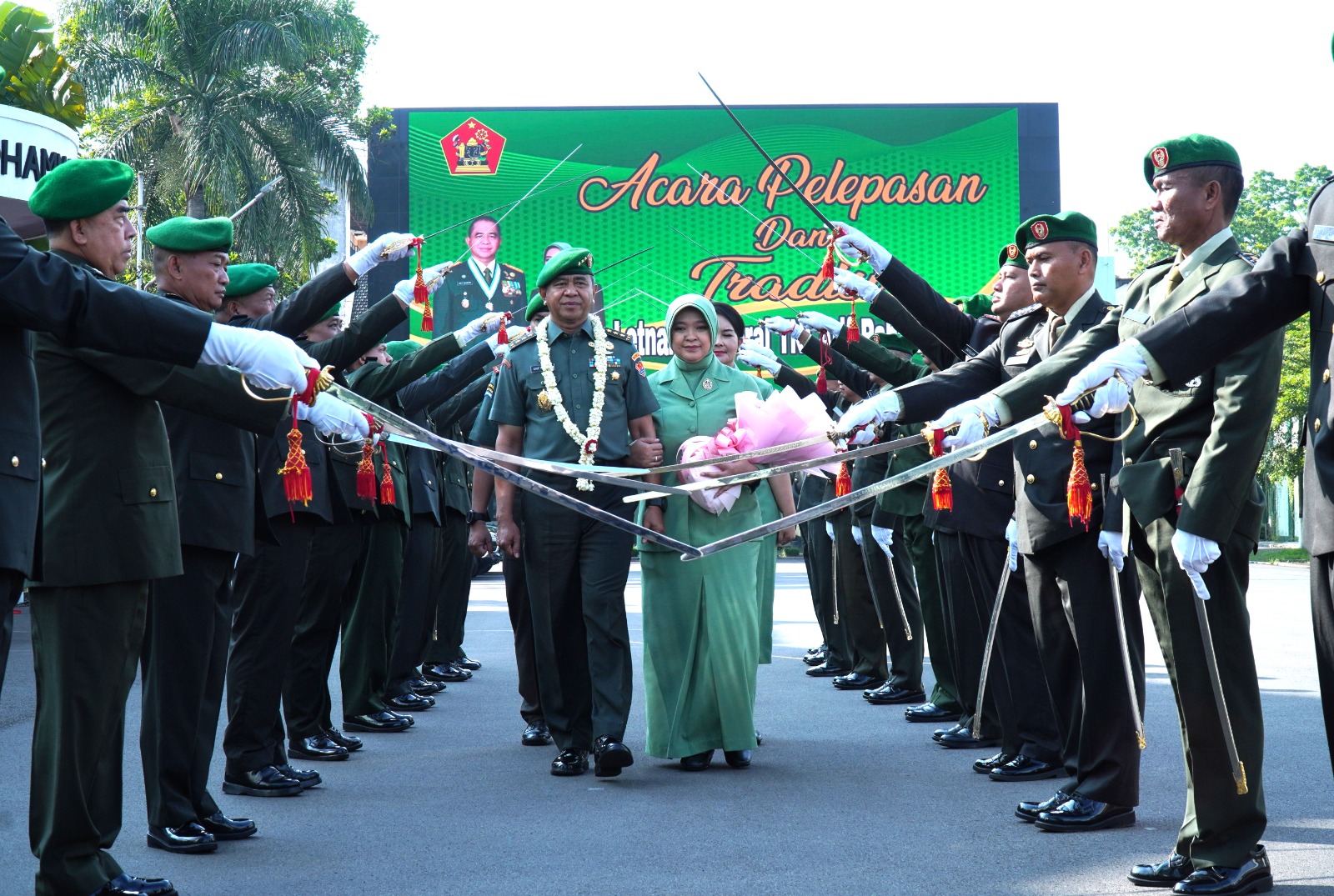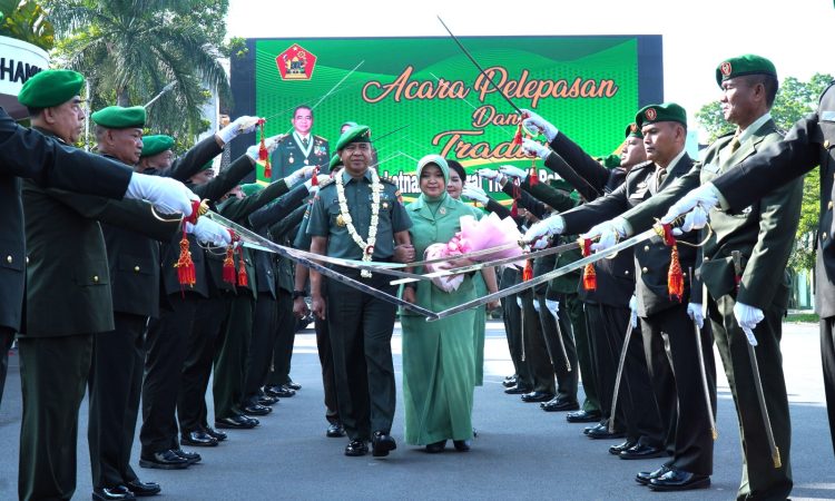 Tradisi pelepasan diawali oleh Wadan Kodiklatad beserta Wakil Ketua Persit KCK PG Kodiklatad memberikan hand bucket dan pengalungan bunga kepada Letjen TNI Arif Rahman, M.A. dan Ibu Mia Arif Rahman dilanjutkan menerima tradisi pedang pora.