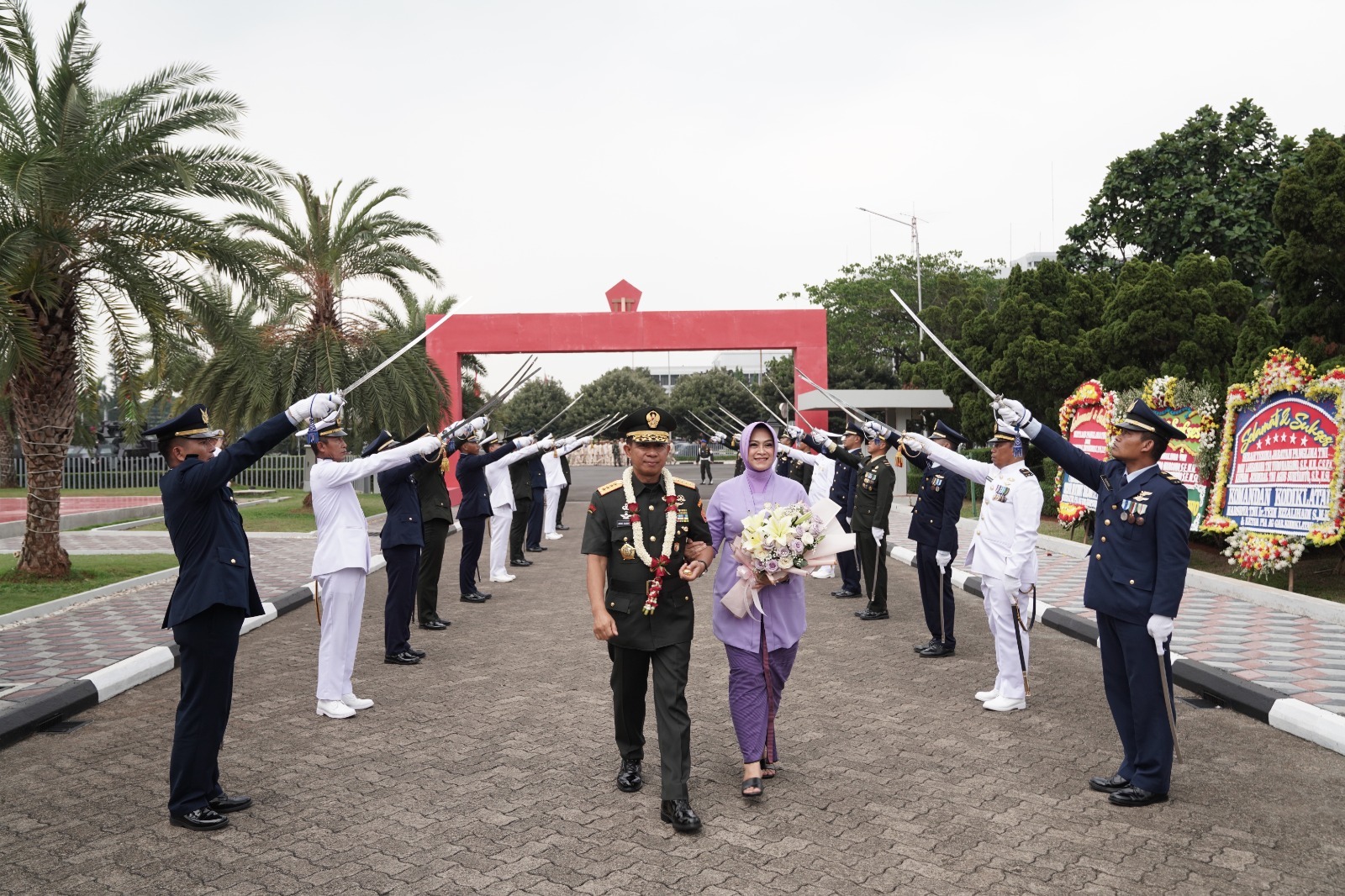 Acara dilanjutkan dengan tradisi pergantian bendera Rapati TNI AL dengan bendera Rapati TNI AD kemudian menghantarkan Laksamana TNI Yudo Margono beserta istri ke Gerbang Utama Mabes TNI yang diawali laporan dan acara pedang pora, perjalanan menuju gerbang utama diiringi nyanyian “tinggalkan ayah tinggalkan ibu oleh para prajurit”.