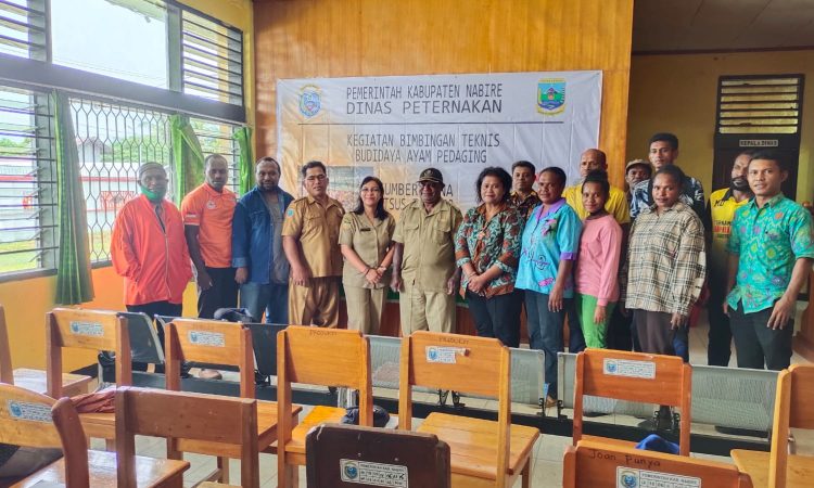 Nabire ,Pos Berita Nasional – Untuk menjawab visi-misi Bupati Nabire Bpk Mesak Magai S.sos.Msi,melalui sumber dana Otsus tahun 2023 , Dinas Peternakan Bidang Perbibitan dan Produksi mengadakan Bimbingan Teknis Budidaya ayam pedaging bagi masyarakat orang asli Papua (oap).