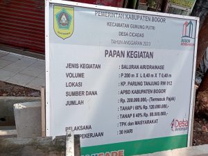 Bogor Pos Berita Nasional-Desa Cicadas Kecamatan Gunung putri Kabupaten Bogor membangun beberapa titik saluran air atau drainase guna mengantisipasi terjadinya banjir pada musim penghujan dengan menggunakan anggaran dana satu milyar satu desa (SAMISADE) tahap ke dua di tahun 2023. 2/12/2023