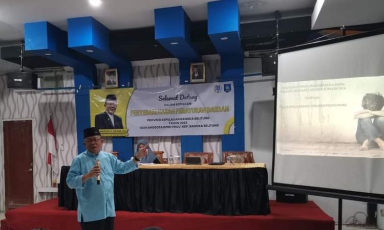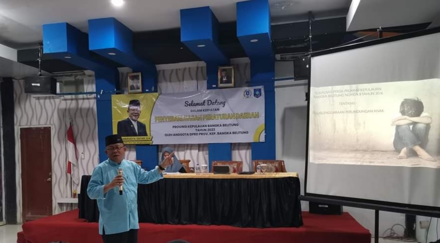 Bangka Selatan – Marsidi Satar Anggota DPRD Provinsi Kepulauan Bangka Belitung (Kep. Babel), dari.Frakai Golkar melakukan kegiatan penyebarluasan Peraturan Daerah (Perda) No. 8 tahun 2016 tentang Penyelenggaraan Perlindungan Anak di hotel A3 Toboali, Sabtu (2/12/23).