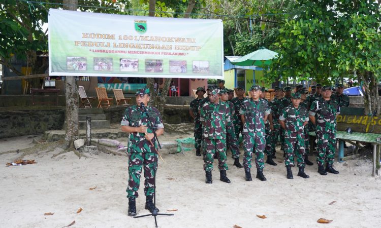 Manokwari – Kodam XVIII/Kasuari menggelar Karya Bakti peduli terhadap lingkungan hidup dengan membersihkan salah satu objek wisata yang berada wilayah Manokwari, tepatnya di Pantai Pasir Putih, Distrik Manokwari Timur, Papua Barat, pada Jumat (8/12/2023).