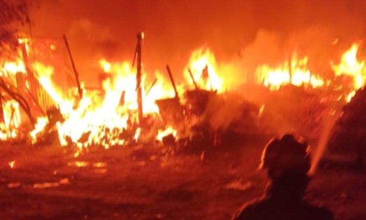 “Awalnya menurut saksi mata atas nama Andre melihat asap tebal di satu pintu, kemudian berusaha menyiram dengan warga tapi api semakin membesar, dan berbunyi ledakan sebagian warga juga ada yang langsung menyambangi pos pemadam terdekat. Untuk sementara, kebakaran diduga karena korsleting listrik,” jelas damkar.